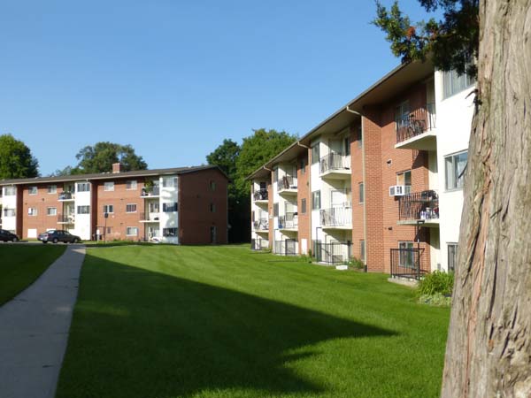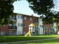 Here you will find four clusters of units. Brown brick, some off-white coloured cement finishing's, grey-taupe eaves and upper facia, brown shingles, single doors to balconies with metal railings. Some lower units are slightly below grade. These are walk up buildings meaning there are no elevators. Each elevator is the same size with nine units on the main level and ten units on each of the upper two levels.