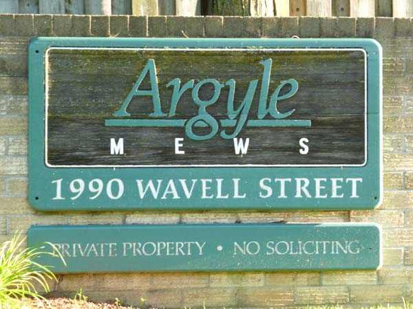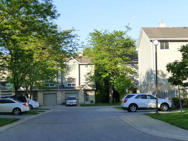 Three level high units, all with single car garages. Some maturing trees. Built in eight clusters of four, seven clusters of five, two clusters of six and one cluster of seven. Across the street to the immediate south is the "Lord Nelson Woods" and to the immediate south west is the "Argyle Area". To the immediate east is the "Forest Lawn Cemetery".