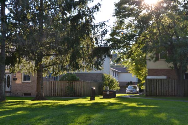 The units built in a zig-zag style have light grey bricking with white siding and black shingles. The style of units built in blocks of four have light brown coloured bricking, yellow siding (or tan or taupe with a hint of light green) and brown shingles. Unit sizes are in the 1,076; 1,088; 1,090 and 1,120 square foot range and all have three upper bedrooms. These units are now over thirty years old and have age-appropriate landscaping’s. The year 2017 saw new asphalt laneways, drive walks and some sidewalks. These units are built with electric heat.