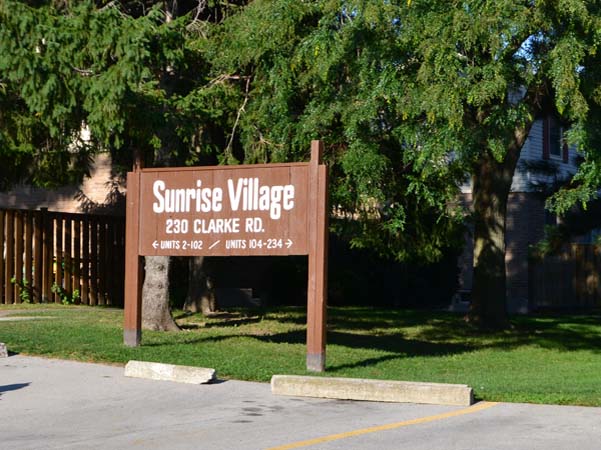 There are twenty-five different clusters in this complex on an "L" shaped piece of land. This complex is on the east side of Clarke Road and it's a busy four lane road. Most of the units are set back in from the road.