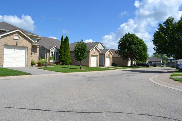 "Detached" freehold units with styles consisting of bungalows, raised ranch style and backsplits. All are single car garages. Mostly light yellow bricking and some speckled yellow bricking, yellow or white coloured garage doors, a mix of asphalt or cement driveways. All side and rear vinyl siding in mostly tan or light grey colour tones. Mostly brown shingles but some black and grey shingles. Mostly covered front entrances, fenced in rear yards. Known unit sizes of 784, 850, 890, 899, 1000, 1030 and 1200 sq. ft. While these sizes may seem small many units have extra finished living space in the basement. In essence, we have a small community of homes within a bigger community.
