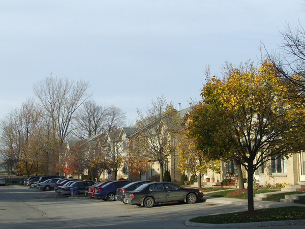 This is a low density complex with a treed front entranceway. Yellow brick, taupe coloured siding with green/grey shingles. Known unit sizes of 1135 and 1295 square feet. Fresh new cement sidewalks and new asphalt, these units look especially nice for their age. Other complexes around town mimic these design features.