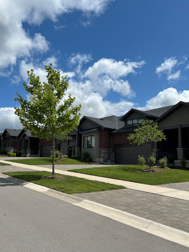 All of these units have double car garages. Speckled red/brown brick, grey front lower skits of stone, taupe grey siding and black shingles. Front peaked rooflines, covered entrances or covered front porches. Rear decks, some interior rear decks partially covered. Block driveways. In 2024 Sifton has bumped up considerably the prices on their remaining few units.