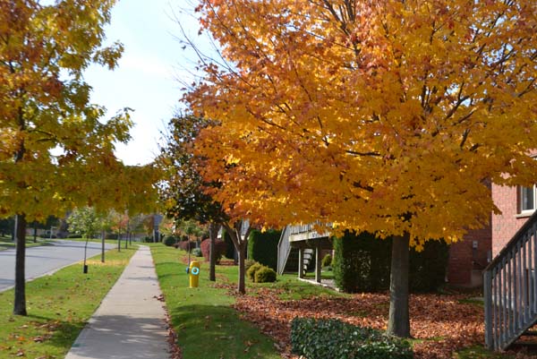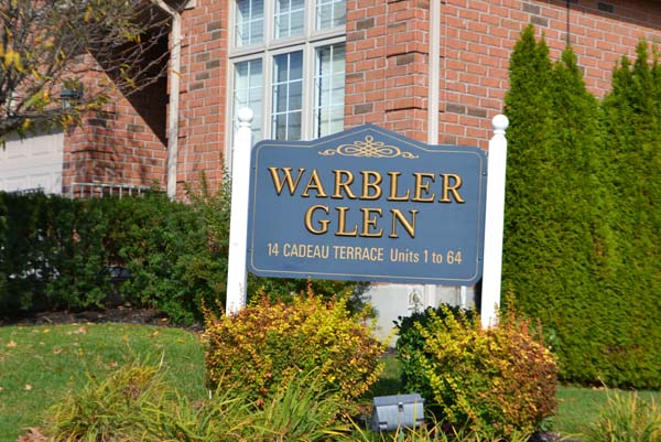 Behind this complex is a pond area and a walking trail which tunnels itself under Commissioners Road West leading to the walking trails of Warbler Woods.