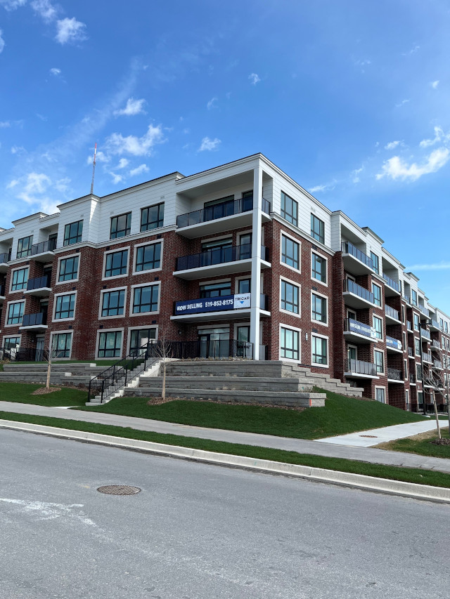 Two low rise buildings, each four stories high sitting on 4.47 acres. Occupancies on the first building have started in 2024. High speed elevators, extra wide hallways, a private guest suite for overnight guests, a media room, a billiards lounge, a fitness centre and outdoor multi-use sports courts, underground parking and covered glass balconies. Pickle ball courts are coming. Whatever happened to tennis courts? A future parkette area is going in next door. Several other Tricar buildings in London and Stratford share many of these design features.