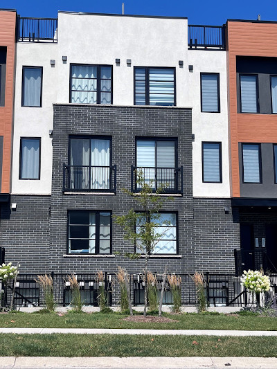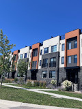 A Birchwood Homes/York Development project. Here you will find three different clusters of units all facing the street. Open rear assigned parking. These buildings offer four levels of living space however the main floor is designed to be slightly below grade. No elevators and no balconies. A brick and stucco like exterior. Grey/black bricking on the first level and partial grey/black bricking on the second level. An upper cream coloured stucco and black window trim. Some imitation wood like siding, some second level Juliet style windows. Model styles are interesting. There are four sizes. The 1,252 sq. ft. units offer one floor living with two bedrooms. The 1,587 sq. ft. units have three lower bedrooms and finally, the 1,777 sq. ft. units have three upper bedrooms and interior stairs to a 520 sq. ft. rooftop terrace! These design styles are relatively new to our area.