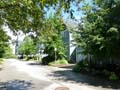 These are two storey detached units with single car garages and private rear patio areas. Grey exterior siding, black shingles, white trim, brick driveways, coniferous trees. A mix of two or three upper bedrooms. Some vaulted ceilings and some wood burning fireplaces.