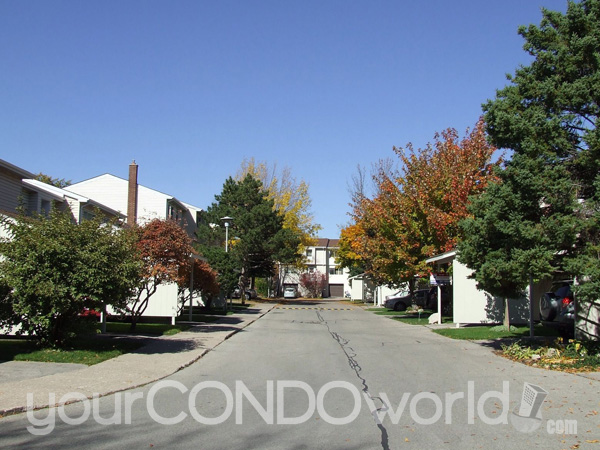 Brown brick, some reddish colour brick, brown shingles, cream coloured siding and light tan coloured siding. There are steps used seasonally up to the second level on the three level units. Some units back onto the "Lamplighter Hotel" on Wellington Road and some units back onto Wellington Road commercial activities. There are eleven clusters in this complex and known carport unit sizes are 1,512 square foot range and 1,650 sq ft for a 3 level unit. The condo fees for 2023 are approximately $477 per month.