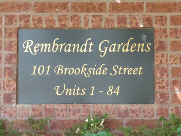 "Rembrandt Homes" built. "Rembrandt" has a history of building townhouse complexes just like this one all around London and beyond. In Cambridge Ontario for example, there is a complex sharing the exact same design and colour scheme.