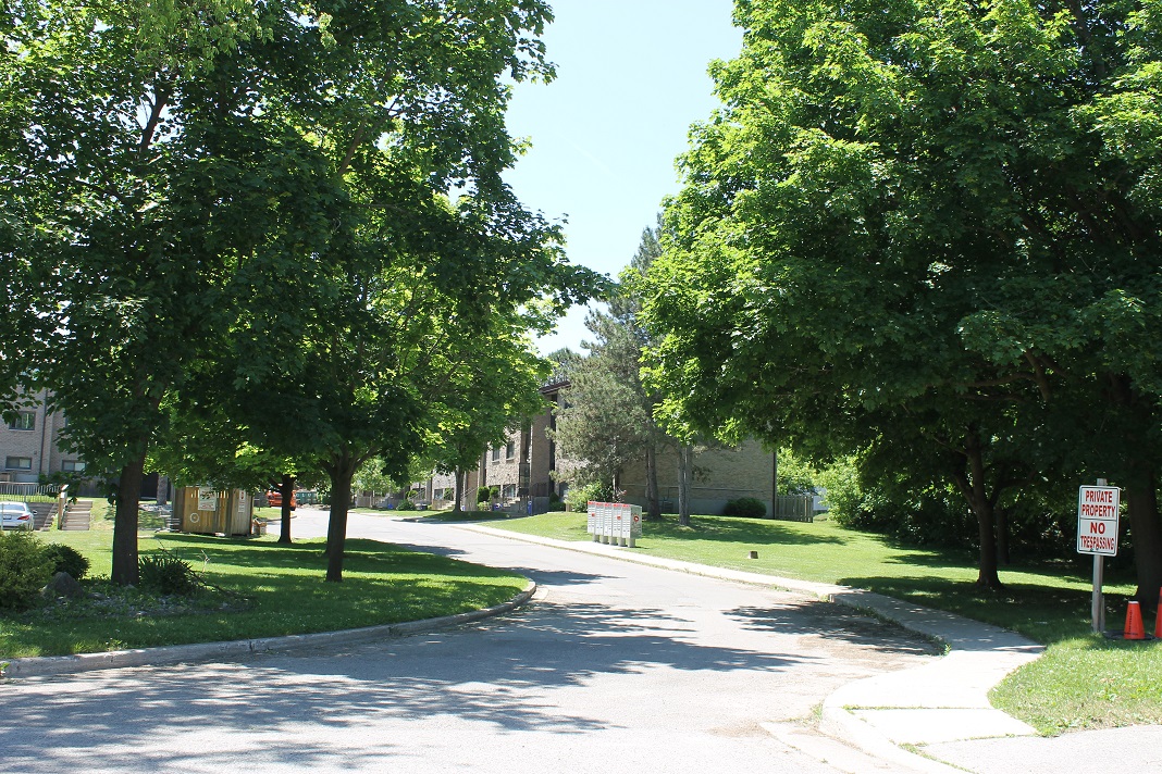 * There are two entrances into this complex. At the rear of the complex is a paved laneway off of Gower Street. The walk along an easterly pathway over to McDonalds and the intersection of Oxford Street West and Wharncliffe Road North takes only five minutes.