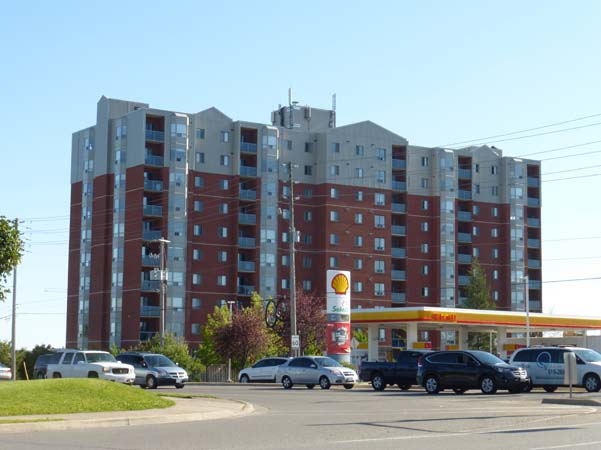Two of the lower pictures illustrate a Shell gas station and a high-rise building. This location is the south easterly corner of Wonderland Road North and Sarnia Road. The #50-70 Chapman Court complex is off just behind 30 Chapman Court high-rise condo structure. If you're university bound, this high rise building is also a condo building (it's 30 Chapman Court) to consider.