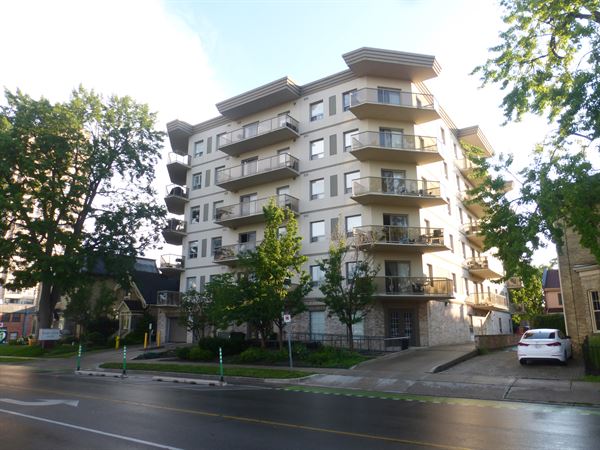 This complex fits into the surrounding neighbourhood wonderfully well. Directly across the street is the "Catholic Central High School" and just up the street is the "Mocha Shriners Club" at 438 Colborne Street. On Dundas Street, a few doors away to the immediate south is the imposing "London Towers" at 389 Dundas Street.