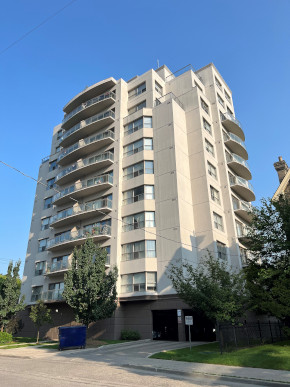 An off white attractive stucco exterior with brown block on the main level. These units have large bright windows and open glassed sided balconies, a small workout room and underground parking. Some units are known to have three balconies. Five known unit sizes of 1,096; 1,130; 1,200; 1,400 and 1,450 square feet and one known penthouse size of 1,785 square feet. For this reason alone, the average price indicator may not be a true reflection of value. We also note that both the 2019 and 2020 price selling indicator included one penthouse sale in each year. The condo fees on a 1,400 sq. ft. unit in 2024 are $659.00 per month. This includes heating and water. Yes, there is central air.
