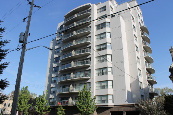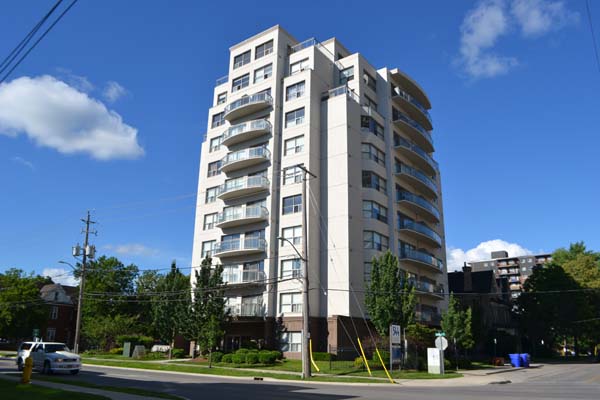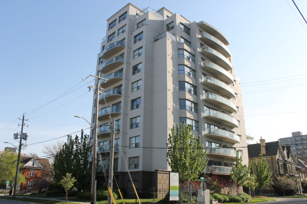 The history of this building is a little bit different. It was built in 2008 and then in 2011 a limited number of units in this building hit the "MLS" system and mostly sold out at $269,000 or $299,900. To this day many of the units in this building are in the names of registered Ontario Company Numbers. The sign at the street level says "one and two bedroom boutique style apartment homes". In this building there is one condo unit on the first floor, 6 condo units on the 2nd to 8th levels, 4 condos on the 9th and 10th levels and two penthouse units on the 11th level. There is a rooftop deck.