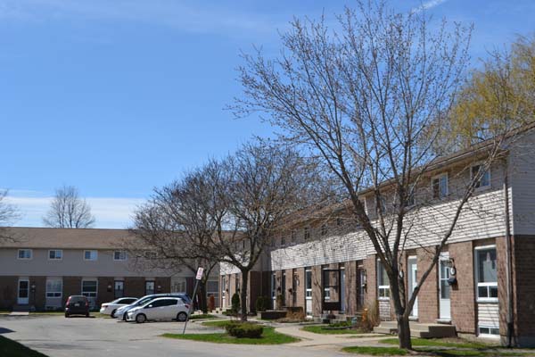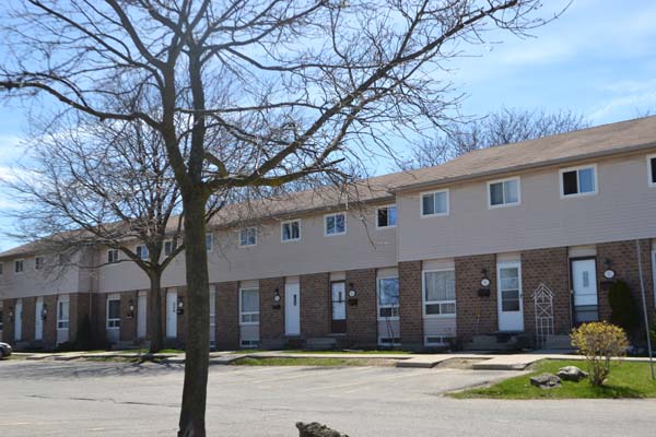 Built in six clusters of eight units each. Two clusters on the west side back onto single family homes and one cluster on the north side backs onto single family homes. Medium brown brick, light tan siding, white painted doors, rear single back doors to fenced courtyards. Not all units have direct parking spaces in front of their units. Small basement front windows eight inches high underneath the main level front window. A "Huron Heights" location steps away from the "London Public Library, Beacock Branch". A two block walk away from all of the shopping and restaurants located on all four corners of Huron and Highbury Street intersection. Bus at door.