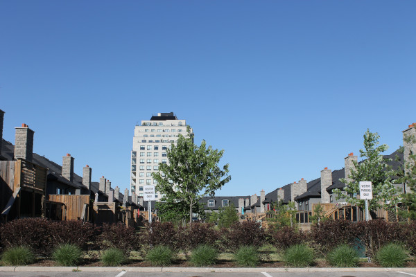 A "Domus Development" project. One cluster of three units, twelve clusters of four and one cluster of six. Known unit sizes are 2270, 2296, 2398 and 2423 sq. ft.