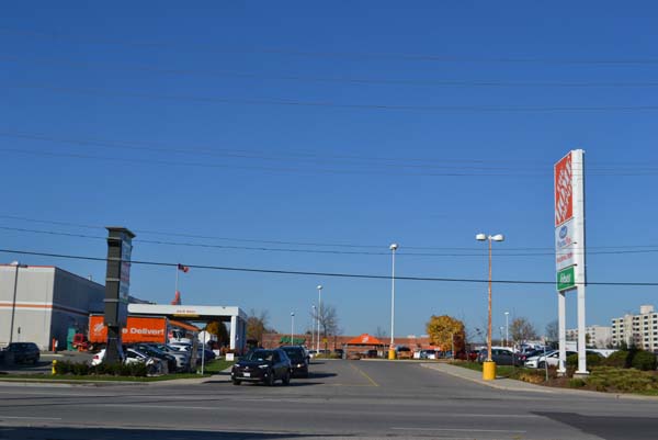 Directly across the street are a Home Depot and a Sobeys. Equally as important is a Tim Hortons and a Starbucks side-by-side.