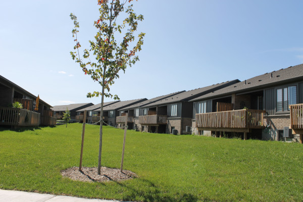 This complex has two rear gates. The gate that gets used the most is the one that opens up to the intersection of Oakcrossing Gate and Oakcrossing Road. That is good because Sarnia Road is literally ten houses away. To some people that is a selling feature.