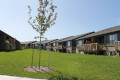What is unusual about this site plan is an open area of greenery in the north/west corner of this site. What is it doing there? It is a respectable piece of land. This helps to create a feeling of open space. That is good. There is also another area of open space in the centre of this complex.