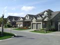 A mix of one floor units, one floor units with lofts and two storey units. Mostly "Jackbuilt Homes" and "Palumbo" built. A few units were finished out by other builders. "Jackbuilt Homes" went on to built part of the 1630 Bayswater condos and "Palumbo" is now building in Port Stanley and Komoka. The one floor models are typically in the 1,300; 1,445; 1,460; 1,497 and 1,532 square feet range and the two storey models are typically in the 1,560; 1,742; 1,840; 1,860 and 2,010 square feet ranges. These units are brick and stone mostly in the brown and taupe colour schemes. Mostly peaked upper front rooflines, some false upper front gables, some covered rear decks and the use of exposed timber, a design more prevalent in ski towns like Collingwood. Streetside you will find brick pillars and decorative metal fencings. Yet another nice feature is a front boulevard designed by the city to keep city traffic calm. It is nicely landscaped. See our pictures.