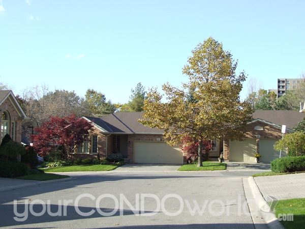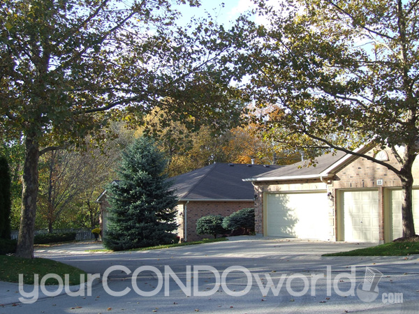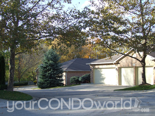 This is an adult-orientated complex of single storey double car garage condos. There are two clusters of two units each when you first drive in followed by exterior cluster sizes of 2, 2, 2, 5, 5 and 5. Finally there is one center cluster of 3 units.