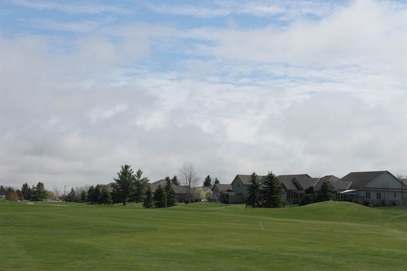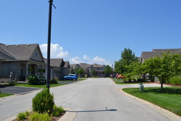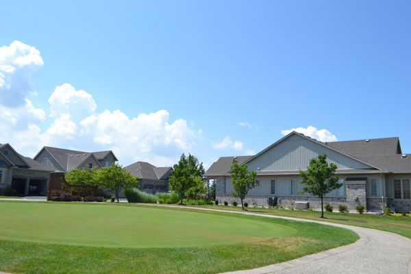A mix of single car garage units and clusters of four units. Extensive use of stone front, sides and rear. Many units have wonderful covered front porches. Many units overlook the golf courses and there is an on-site putting green area. See our pictures.
