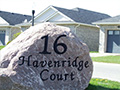 Unit details vary. They all have light speckled grey and tan bricking, slate coloured garage doors, black shingles and cream window trim and cream and tan siding. Three known sizes of single car garage units are 999; 1,061 and 1,170 square feet. Five rear units back onto a treed ravine area with 1.5 or two car garages and lower level walkouts. Fourteen units have single car garages, three have 1.5 car garages and 5 units have double car garages.
