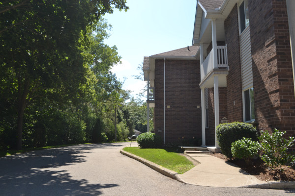 Eight one floor units overlooking a ravine. Multiple outside sitting areas. One or two bedroom units which are compact in size with crawl spaces rather than full basements. Garages which are attached or detached. Three known sizes are 654; 1,000 and 1,053 square feet. This is a senior's orientated complex. There are some pet restrictions.