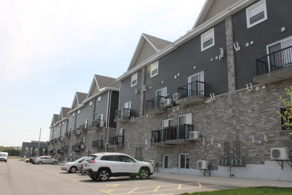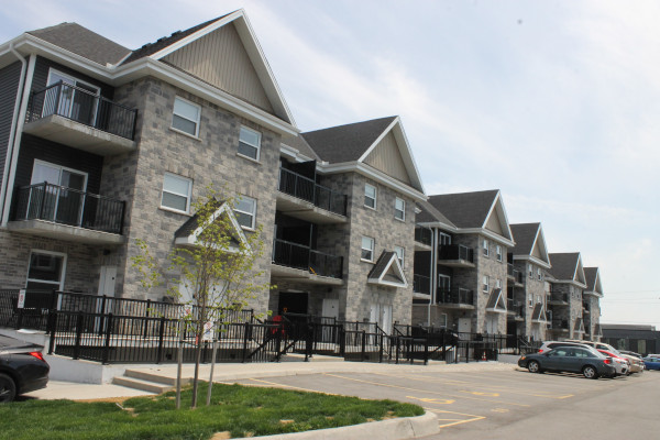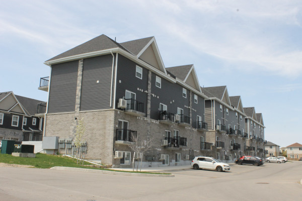 Some pet restrictions. The Woodstock General Hospital is right next door to the west. Many people find value to this location. The noise of the 401 can be heard in the distance. This project had a long build-out time.